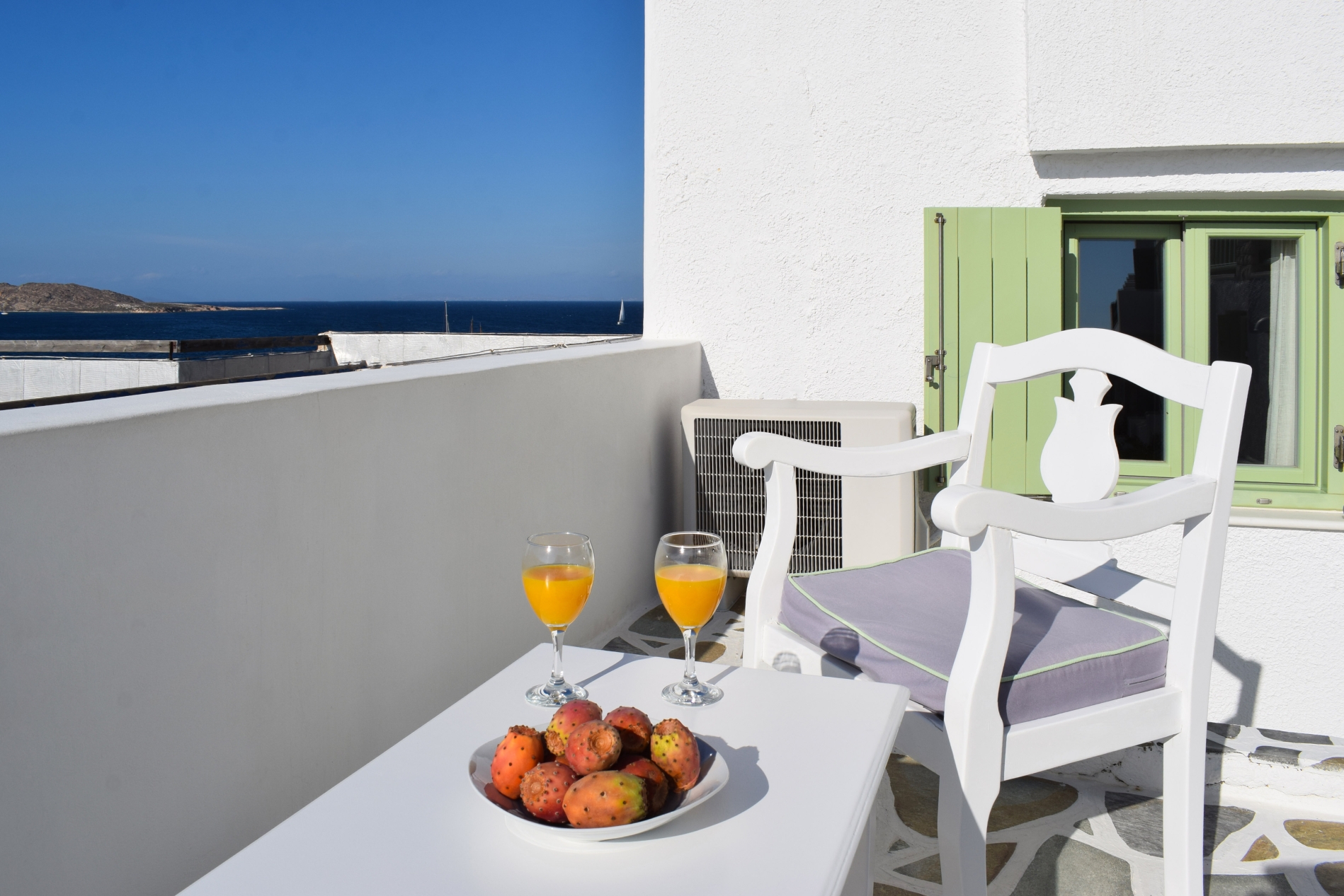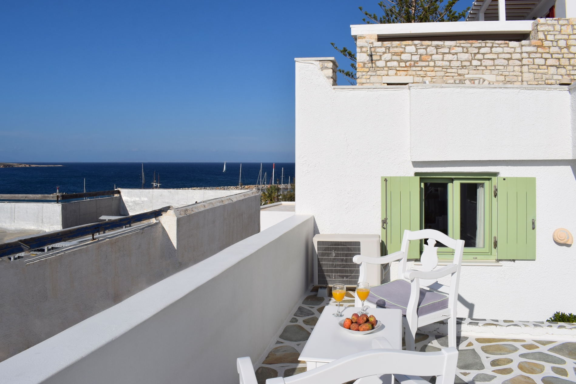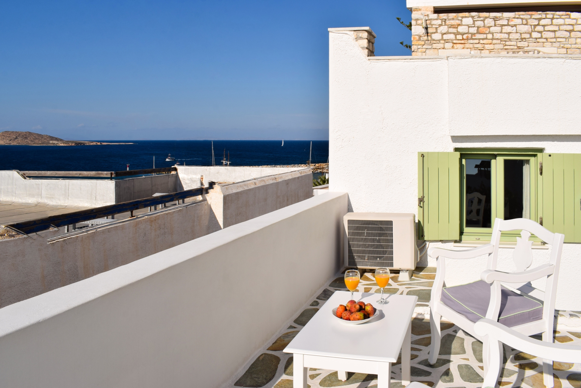 Το συγκεκριμένο δωμάτιο βρίσκεται στο ισόγειο,ακολουθωντας αισθητικά την παραδοσιακή Αιγαιοπελαγίτικη τεχνική της τσιμεντοκονίας! Στον εξωτερικό του χώρο, υπαρχει ιδιωτική ηλιόλουστη βεράντα με θέα στο ηλιοβασίλεμα!