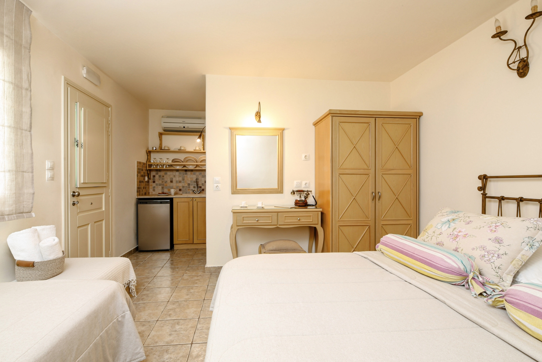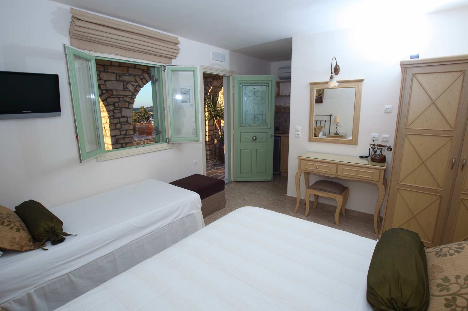 Με παραδοσιακή διακόσμηση σε ζεστούς γήινους τόνους, αυτό το στούντιο διαθέτει βεράντα με θέα στο Αιγαίο Πέλαγος. Τα παιδιά έως 6 ετών είναι δωρεάν.