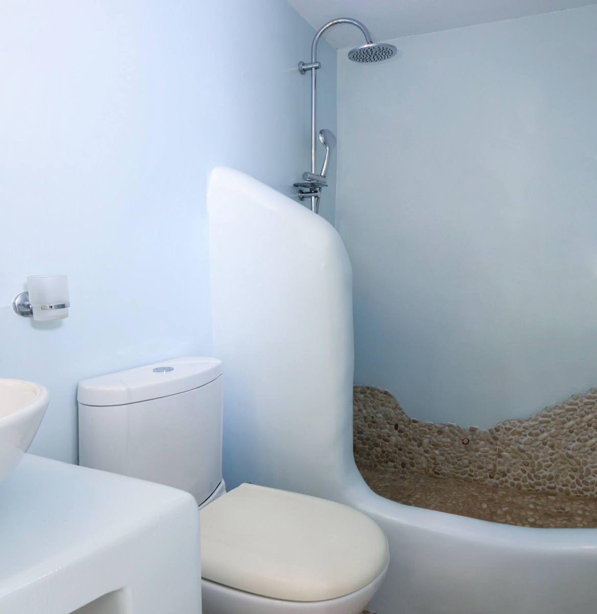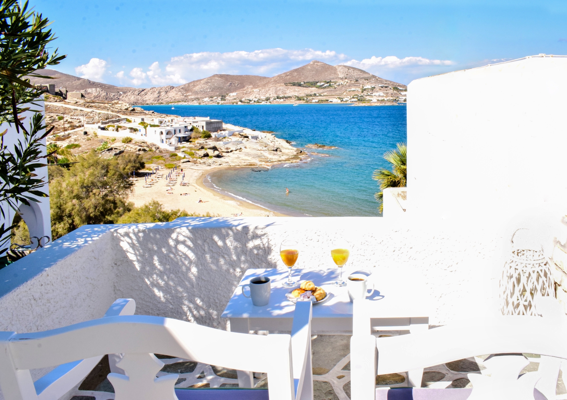 Decorado tradicionalmente con colores cálidos, este estudio se abre a un balcón o terraza con vistas al jardín y al mar.